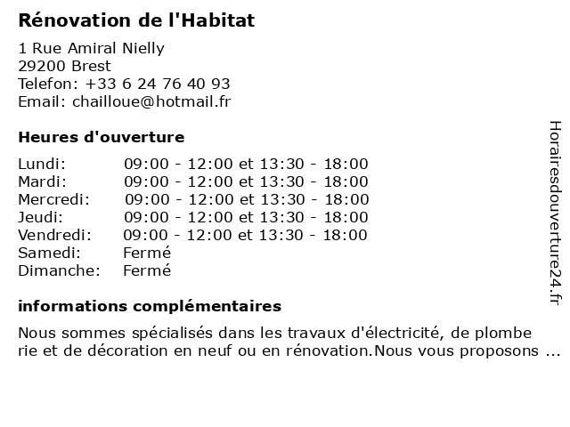 Horaires d'ouverture |