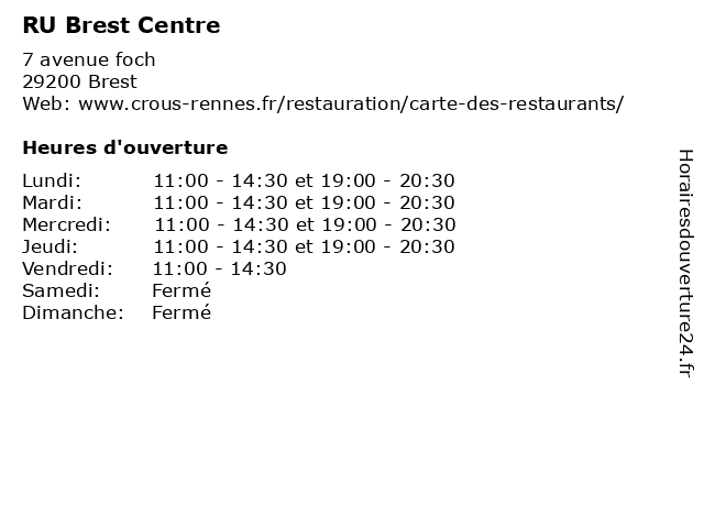 | Mardi | 11:00-14:30 et 19:00-20:30 |