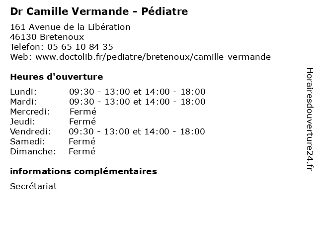 | Mardi | 09:30-13:00 et 14:00-18:00 |
