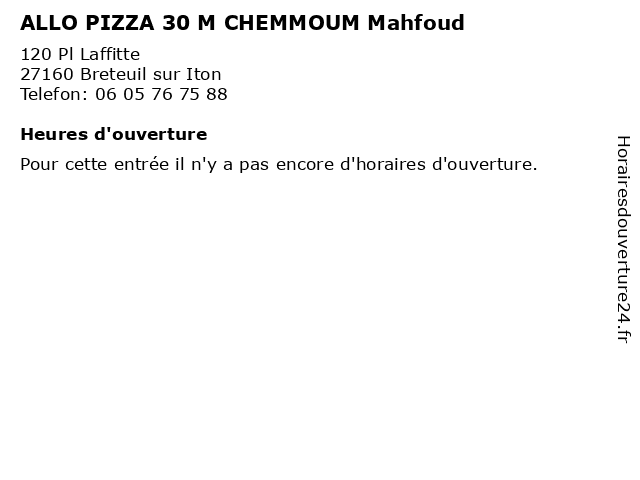 | Appeler ALLO PIZZA 30 M CHEMMOUM Mahfoud | |