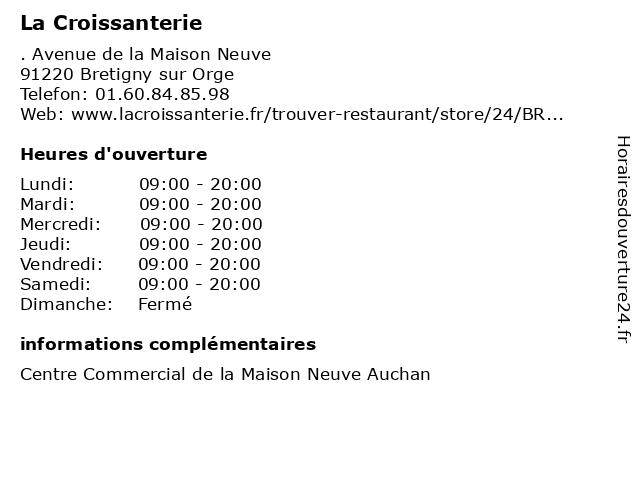 | Termes de recherche pour La Croissanterie:restauration, la, boissons, croissanterie, snacking, sandwicherie |
