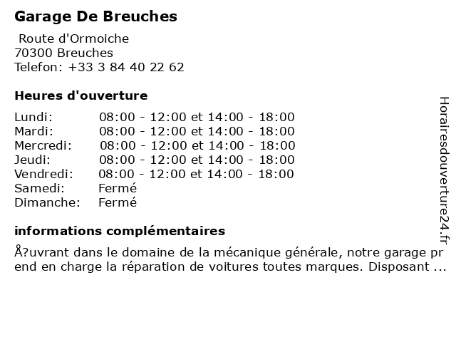 Lundi | 08:00-12:00 et 14:00-18:00 |