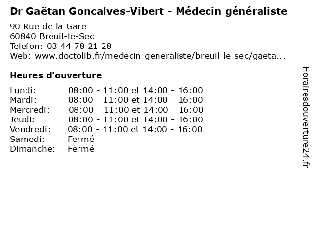 1 Gaëtan Gruez - Masseur-kinésithérapeute (Distance: 21,49 km) 1 Square Hippocrate, 60880 Le Meux gaetan, gaëtan, gruez, kiné, kinésithérapeute, masseur, rééducation, soin 2 Dr Aneta Goncalves Galan - Médecin généraliste (Distance: 21,59 km) 51 Avenue René Firmin, 60410 Verberie aneta, docteur, dr, galan, generaliste, goncalves, généraliste, medical, médecin, soin 3 Dr Gaëtan Depret - Médecin généraliste (Distance: 24,47 km) 8 Avenue Henri Adnot, 60200 Compiegne consultation, depret, docteur, dr, gaetan, gaëtan, généraliste, med, médecin, médecine, traitement 4 Goncalves Manuel et Fils (Distance: 27,32 km) 445 Rue de la République, 60280 Margny-lès-Compiègne et, fils, goncalves, manuel 5 Madame Nathalie Goncalves Pereir (Distance: 37,27 km) 16 Rue Camelinat, 95190 Goussainville goncalves, madame, nathalie, pereir, restaurants 6 |
