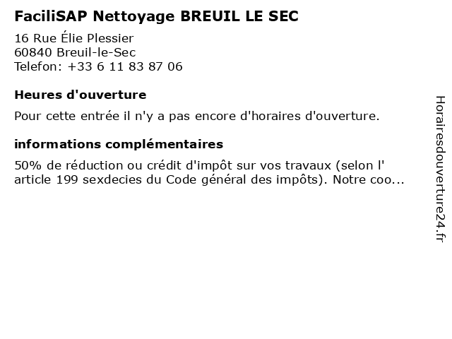 Appeler FaciliSAP Nettoyage BREUIL LE SEC | |
