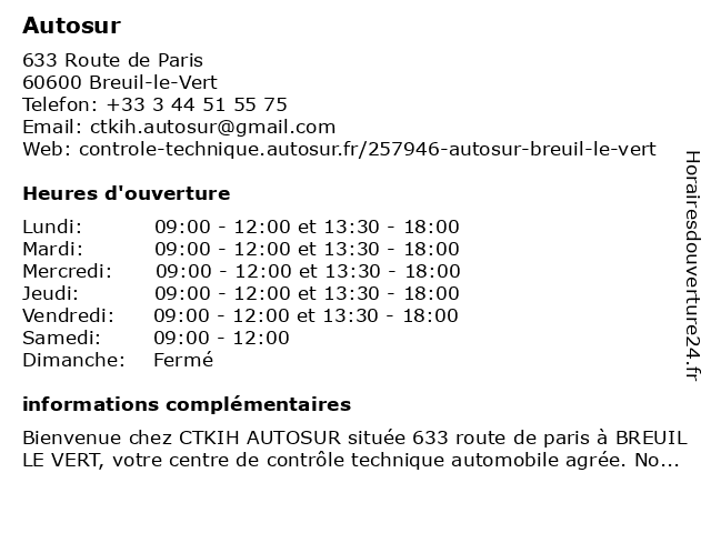 1 AUTOSUR LAIGNEVILLE (Distance: 6,40 km) 1235 Rue du 8 Mai 1945, 60290 Laigneville autosur, laigneville 5 AUTOSUR SAINT-MAXIMIN (Distance: 14,19 km) Rue Albert Einsten, 60740 Saint-Maximin autosur, maximin, saint 6 AUTOSUR SAINT-JUST-EN-CHAUSSÉE (Distance: 16,59 km) Rue Brunehaut, 60130 Saint-Just-en-Chaussée autosur, chaussée, en, just, saint |