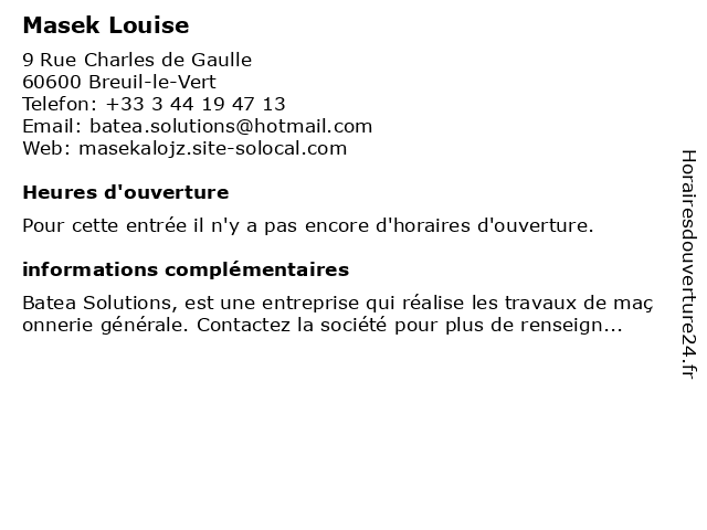 1 Boulangerie Louise (Distance: 1,02 km) 895 route de Paris, 60600 Breuil-le-Vert boulangerie, croissants, gâteaux, louise, pain, viennoiserie 2 École maternelle publique Louise Michel (Distance: 9,93 km) 3 Passage des écoles, 60250 Mouy ecole, education, louise, maternelle, michel, publique, services, école 3 École primaire publique Louise Michel (Distance: 11,14 km) 129 Rue Marcel Dequevauviller, 60660 Saint-Vaast-lès-Mello cours, louise, michel, primaire, publique, services, école 4 École Élèmentaire Publique - Louise Michel/Jean Biondi (Distance: 12,28 km) 3 Jules Ferry, 60100 Creil biondi, ecole, education, louise, michel/jean, publique, services, école, élèmentaire 5 Boulangerie Louise (Distance: 17,79 km) 4 rue les Huit Curés, 60270 Gouvieux -patisserie, boulangerie, boulangers, louise 6 Dr Marie Louise Peres - Gynécologue (Distance: 18,97 km) 16 Rue de Gouvieux, 60500 Chantilly bebe, dr, gynecologie, gynécologue, louise, marie, maternite, obstetrique, peres |