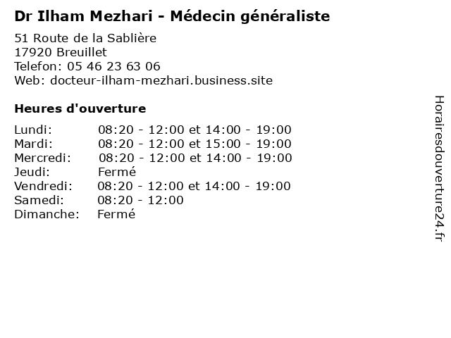| Lundi | 08:20-12:00 et 14:00-19:00 |