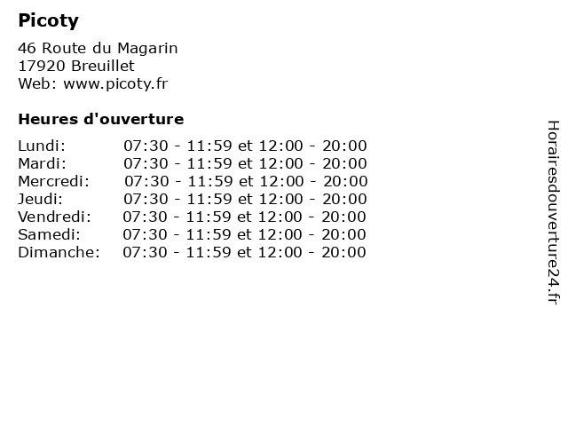 | Mercredi | 07:30-11:59 et 12:00-20:00 |