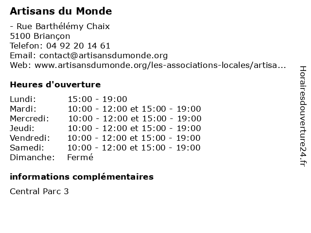 | Samedi | 10:00-12:00 et 15:00-19:00 |