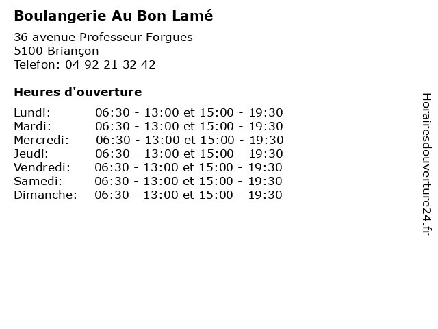 | Samedi | 06:30-13:00 et 15:00-19:30 |