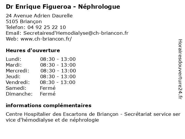 1 Dr Mohammed Fakir - Néphrologue (Distance: 0,00 km) 24 Avenue Adrien Daurelle, 05105 Briançon dialyse, dr, fakir, hemodialyse, mohammed, néphrologue, péritonéale, renale 2 Dr Enrique Nalda - Médecin nucléaire (Distance: 58,82 km) 1 Place Auguste Muret, 05007 Gap consultation, docteur, dr, enrique, med, médecin, médecine, nalda, nucléaire, traitement 3 Dr Jeanne-Luce Garnier - Néphrologue (Distance: 58,82 km) 1 Place Auguste Muret, 05007 Gap consultation, docteur, dr, garnier, jeanne, luce, med, médecin, médecine, néphrologue, traitement |