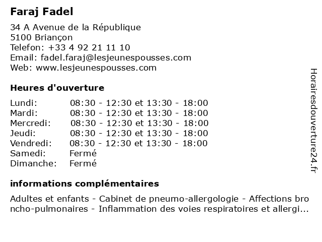 Lundi | 08:30-12:30 et 13:30-18:00 |