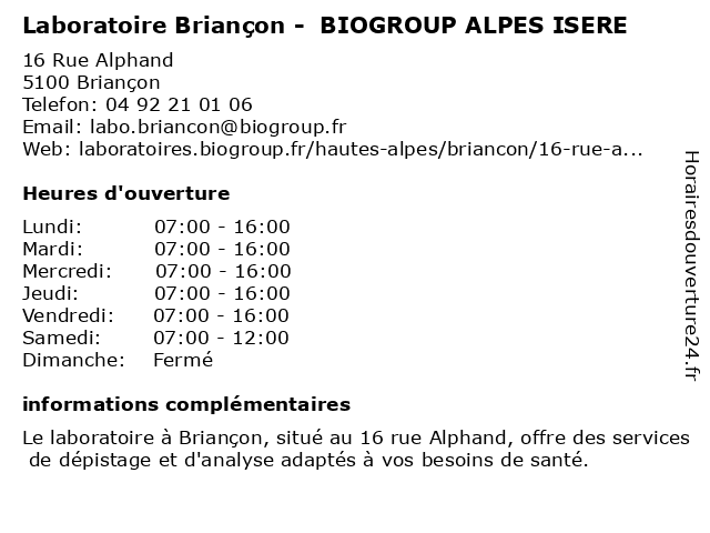 Termes de recherche pour Laboratoire Briançon - BIOGROUP ALPES ISERE:laboratoire, alpes, briancon, isere, biogroup, dépistages, laboratoire de diagnostic |