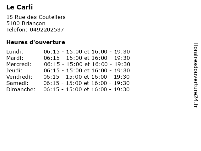 | Mardi | 06:15-15:00 et 16:00-19:30 |