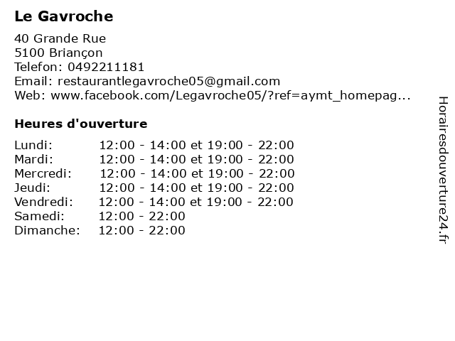 | Jeudi | 12:00-14:00 et 19:00-22:00 |