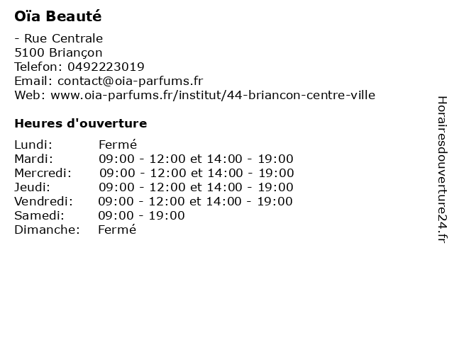 | Mardi | 09:00-12:00 et 14:00-19:00 |