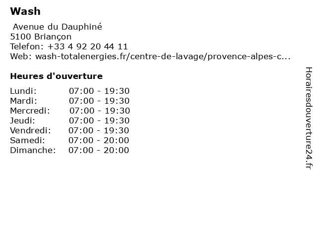| Lundi | 07:00-19:30 |