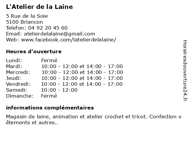 | Mardi | 10:00-12:00 et 14:00-17:00 |