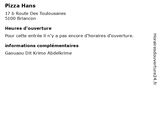 Termes de recherche pour Pizza Hans:pizza, restaurants, hans, dit, krimo, abdelkrime, gaouaou |