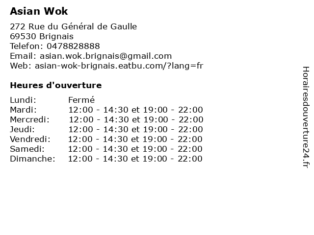 | Mardi | 12:00-14:30 et 19:00-22:00 |