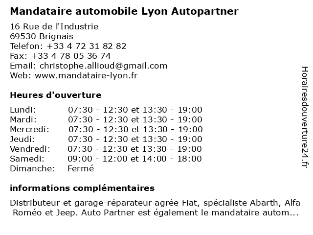 | Lundi | 07:30-12:30 et 13:30-19:00 |