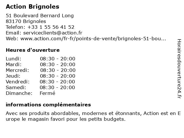 1 Action Sud Marketing (Distance: 7,94 km) 993 Avenue des Chênes Verts, 83170 Brignoles action, marketing, sud 2 Centre Communal d'Action Sociale (CCAS) (Distance: 12,59 km) 40 Chemin du Derrot, 83570 Carcès action, ccas, centre, communal, d'action, sociale 3 Action Provence Dépannage Installation (Distance: 17,01 km) Rue du Lavoir, 83470 Seillons-Source-d'Argens action, dépannage, installation, provence 4 Action Cuers (Distance: 17,61 km) Rue du Paradisier, 83390 Cuers action, animaux domestiques, articles de sport, articles ménagers, boissons & alimentation, bricolage, cuers, cuisine, habitat, hobby, hygiène & beauté, jardin, jouets, mode, multimédia, papeterie & bureau, voyages 5 Le Coin Des Animaux (Distance: 0,14 km) 190 Boulevard Bernard Long, 83170 Brignoles animaux, canines, chiens, coin, des, domestiques, le, toiletteurs 6 La Maison de Toutou et ses Amis (Distance: 0,62 km) 121 Rue Jules Ferry, 83170 Brignoles amis, canines, chiens, de, domestiques, et, la, maison, ses, toiletteurs, toutou |