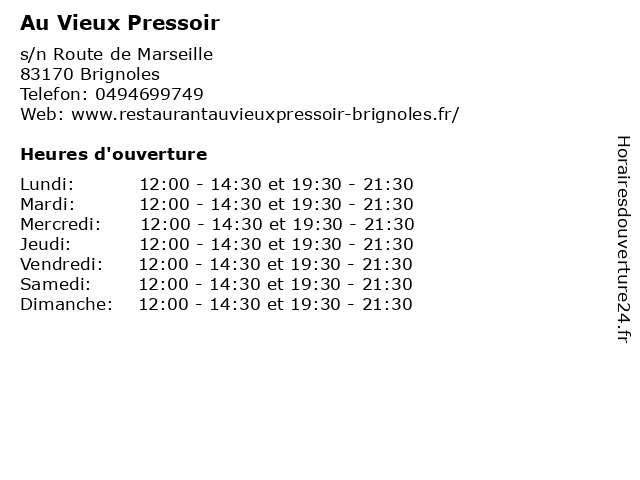 Vendredi | 12:00-14:30 et 19:30-21:30 |