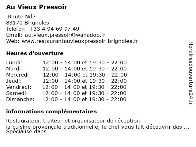 Vendredi | 12:00-14:00 et 19:30-22:00 |