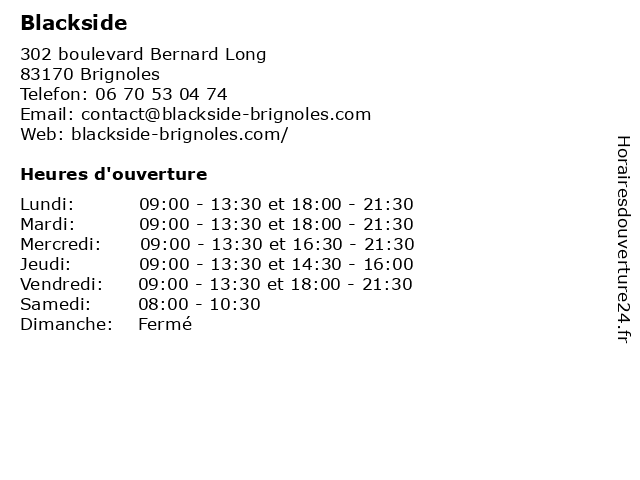 | Lundi | 09:00-13:30 et 18:00-21:30 |