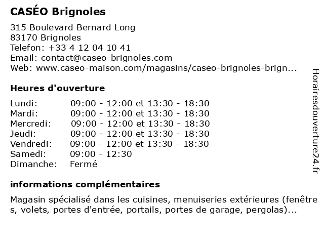 | Lundi | 09:00-12:00 et 13:30-18:30 |
