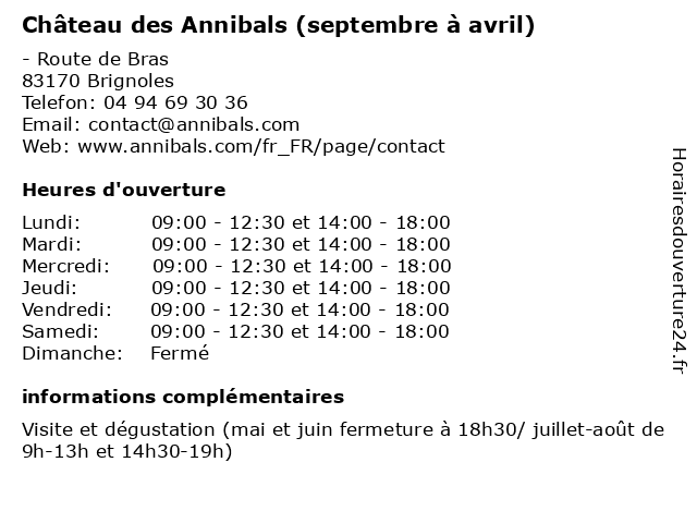 | Samedi | 09:00-12:30 et 14:00-18:00 |