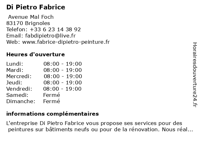 1 DI.ME.PAR (Distribution Méditerranéenne de Parfumerie) (Distance: 1,82 km) 450 Avenue Saint Jean, 83170 Brignoles de, di.me.par, distribution, méditerranéenne, parfumerie 3 Les Ecuries du Mas Di Gau (Distance: 3,48 km) 261 Chemin du Petit Serre, 83143 Le Val centre équestre, cheval, chevaux, di, du, ecuries, gau, les, mas, équitation 4 Pizza Di Trapani (Distance: 7,77 km) . avenue Edouard Le Bellegou, 83136 Garéoult di, pizza, pizzeria, restaurant, trapani 5 Pizza Di Trapani (Distance: 8,97 km) 4 Lotissement Les Aubepines, 83136 Gareoult di, pizza, restaurants, trapani 6 DI.ME.PAR (Distribution Méditerranéenne de Parfumerie) (Distance: 10,43 km) Fray Redon, 83136 Rocbaron de, di.me.par, distribution, méditerranéenne, parfumerie |