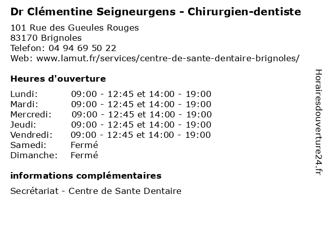 | Lundi | 09:00-12:45 et 14:00-19:00 |