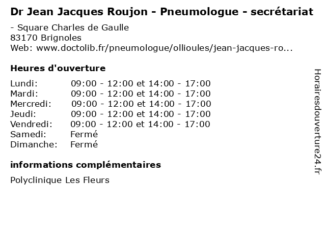 | Lundi | 09:00-12:00 et 14:00-17:00 |