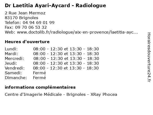 | Mercredi | 08:00-12:30 et 13:30-18:30 |