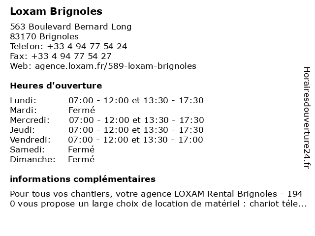1 Loxam (Distance: 1,27 km) 7 Route D'aix, 83170 Brignoles atelier, electrique, loxam, nouveaux materiel, remblayage, terrassement, transport 2 Loxam St Maximin (Distance: 17,97 km) Avenue de la Maximinoise, 83470 Saint-Maximin-la-Sainte-Baume loxam, maximin, st 3 Loxam Toulon la Farlède (Distance: 27,45 km) Avenue Alphonse Lavallée, 83210 La Farlède farlède, la, loxam, toulon 5 Loxam (Distance: 35,51 km) 1807 Chemin Robert Brun, 83500 La seyne-sur-mer electrique nouveaux materiel, loxam, remblayage, terrassement 6 Loxam (Distance: 45,82 km) 2 Avenue De Saint-menet, 13011 Marseille atelier, electrique, loxam, nouveaux materiel, remblayage, terrassement, transport |
