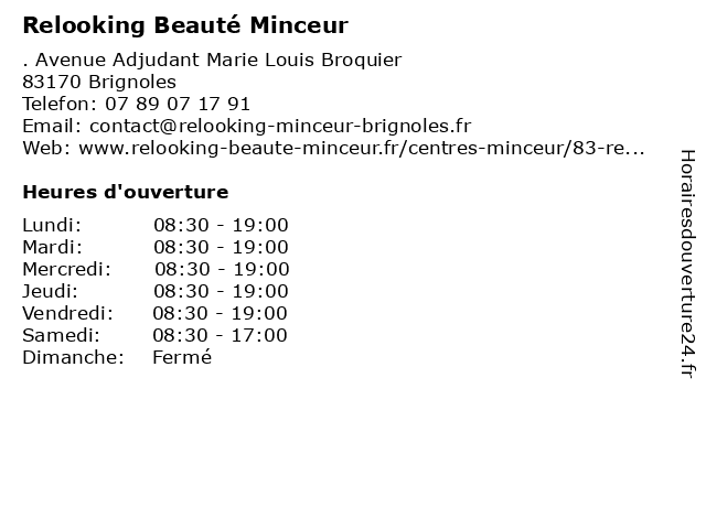 1 Institut Oïa Beauté (Distance: 0,73 km) - Centre Commercial Leclerc, 83170 Brignoles beauté, cosmétique, institut, maquillage, oïa, parfum, passion 2 Institut Oïa Beauté (Distance: 2,05 km) 22 Rue Barbaroux, 83170 Brignoles accessoires, beaute, beauté, institut, oïa, parfumeries, passion, soins 3 Insta Beauté (Distance: 2,30 km) 137 avenue Maréchal Foch, 83170 Brignoles beauté, coiffeur, coiffure, coloration, coupe, insta, shampooing 4 Espace Beauté Et Bien Etre (Distance: 2,48 km) 28 Avenue Dréo, 83170 Brignoles beauté, bien, espace, et, etre 5 Les Anges Beauté (Distance: 10,80 km) . Quartier Fray Redon, 83136 Rocbaron anges, beauté, institut de beauté, les, manucure, maquillage, soins, épilations 6 Espace Beauté & BioTzen (Distance: 10,99 km) 3 Avenue de la Libération, 83136 Néoules beauté, biotzen, coiffure, espace, institut de beauté, manucure, maquillage, soins, épilations |