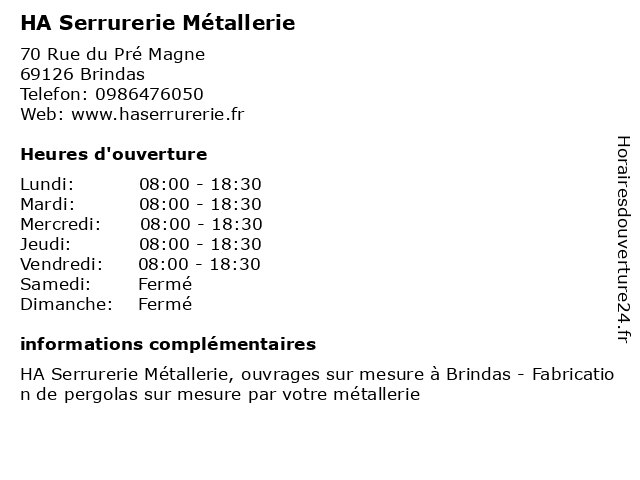 | Lundi | 08:00-18:30 |