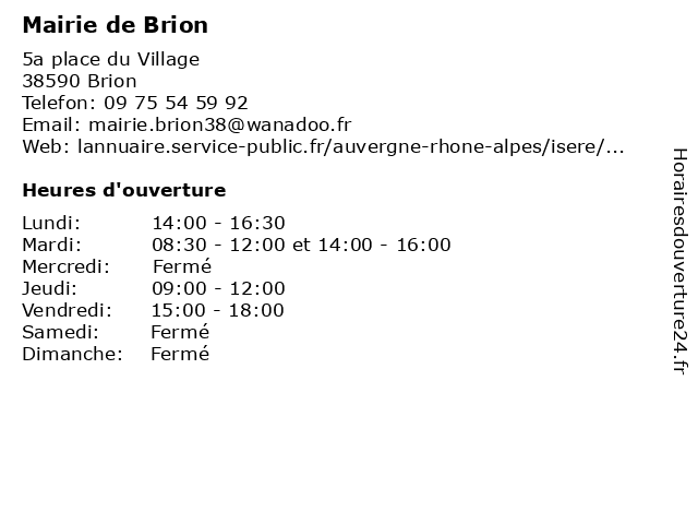 Termes de recherche pour Mairie de Brion:de, mairie, information, brion, commune, formalité |