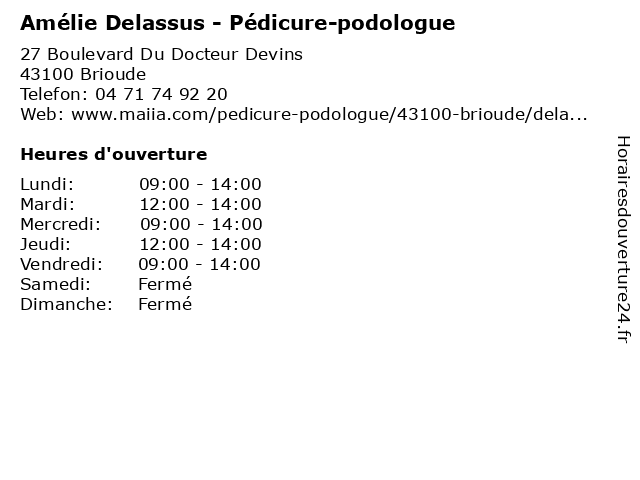 | Samedi | Fermé |