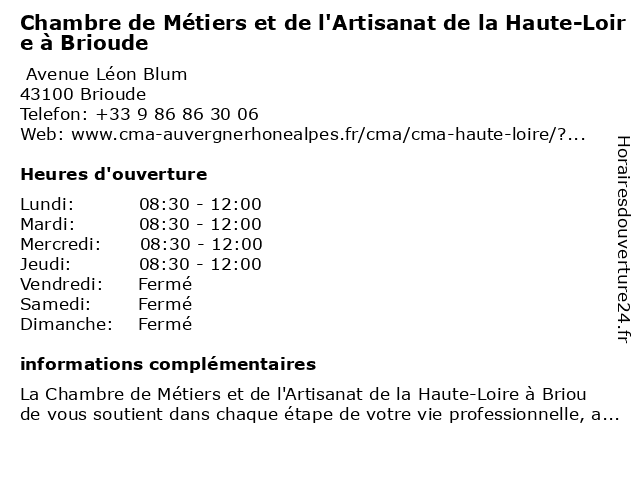 Termes de recherche pour Chambre de Métiers et de l'Artisanat de la Haute-Loire à Brioude:la, et, de, brioude, loire, metiers, chambre, haute, l'artisanat |