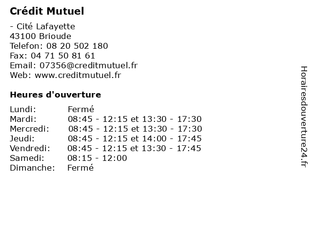 | Lundi | Fermé |