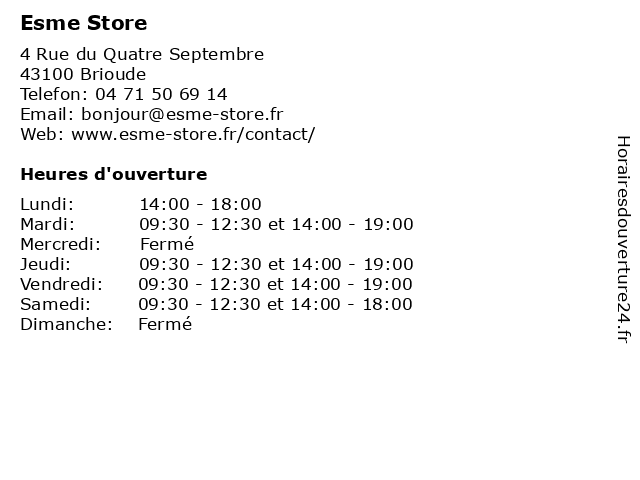 | Mardi | 09:30-12:30 et 14:00-19:00 |