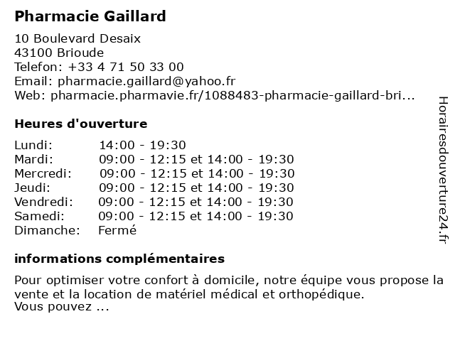 | Lundi | 14:00-19:30 |