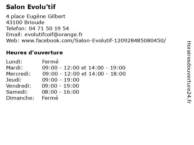 | Mardi | 09:00-12:00 et 14:00-19:00 |