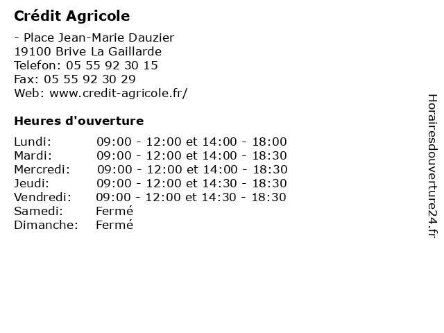 1 Crédit Agricole (Distance: 0,52 km) 5 Place de la république, 19100 Brive agricole, assurances, bancaire, banque, crédit, gascogne, mutuel, pyrénées, services 2 Crédit Agricole (Distance: 0,60 km) 1 Avenue Pasteur, 19100 Brive La Gaillarde agence, agricole, assurance, bancaire, banque, crédit 3 Crédit Agricole (Distance: 1,10 km) 32 Avenue Pierre Semard, 19100 Brive agence, agricole, assurance, bancaire, banque, crédit 4 Crédit Agricole (Distance: 1,24 km) 9 Avenue Ribot, 19100 Brive La Gaillarde agence, agricole, assurance, bancaire, banque, crédit 5 Crédit Agricole (Distance: 2,21 km) 11 Avenue Pierre et Marie Curie, 19361 Malemort agence, agricole, assurance, bancaire, banque, crédit 6 Crédit Agricole (Distance: 2,42 km) 17 Rue Jean Marsalès, 19100 Brive La Gaillarde agence, agricole, assurance, bancaire, banque, crédit |
