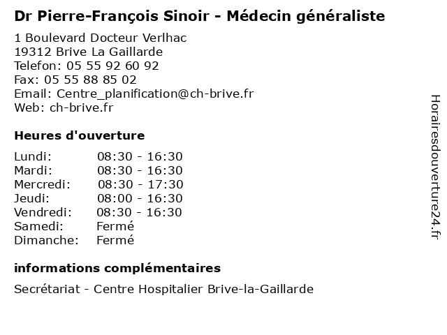 1 SIEGERTH François (Distance: 0,14 km) 1 Boulevard Docteur Verlhac, 19100 Brive-la-Gaillarde françois, siegerth 2 Maître François Chadal - Avocat (Distance: 0,61 km) 1 Rue Louis Latrade, 19100 Brive-la-Gaillarde avocat, chadal, françois, justice, lois, maitre, maître 3 Dr François Vieban - Psychiatre (Distance: 1,00 km) 24 rue Docteur Roux, 19100 Brive La Gaillarde consultation, docteur, dr, francois, françois, med, médecin, médecine, psychiatre, traitement, vieban 4 Vergne Jean-François (Distance: 1,22 km) 10 Boulevard de Puyblanc, 19100 Brive-la-Gaillarde françois, jean, vergne 5 Avocats Michel Labrousse, Céline Regy, François Armand et associés SCP (Distance: 1,22 km) 8 Boulevard de Puyblanc, 19100 Brive-la-Gaillarde armand, associés, avocats, céline, et, françois, labrousse, michel, regy, scp 6 Dr Jean-François Martaillé - Cardiologue (Distance: 1,36 km) 16 Avenue Jean Jaurès, 19100 Brive-la-Gaillarde cardiologie, cardiologue, consultation, docteur, dr, françois, jean, martaillé, santé, secrétariat |