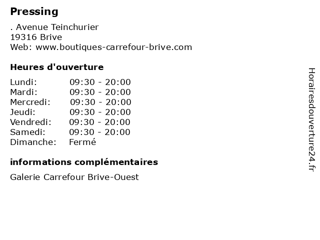 | Samedi | 09:30-20:00 |