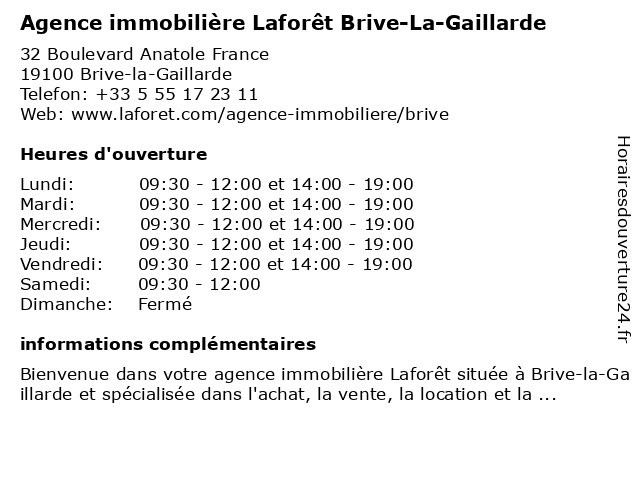 | Lundi | 09:30-12:00 et 14:00-19:00 |