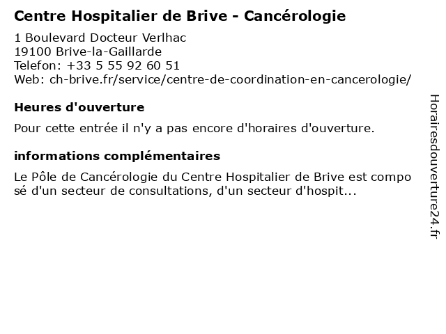 | Appeler Centre Hospitalier de Brive - Cancérologie | |